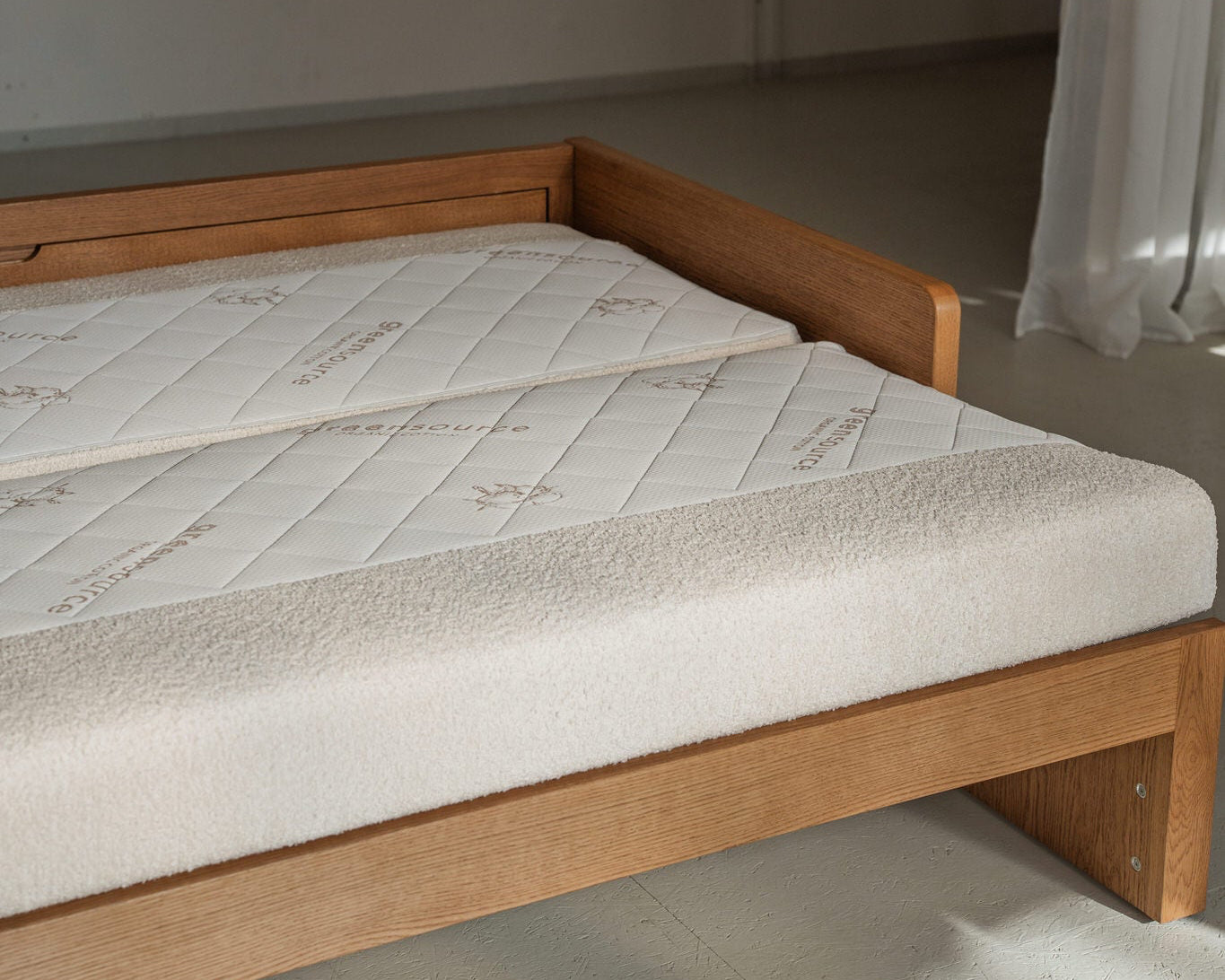 Our covers are removable, washable, and made to fit our mattresses and pillows perfectly. The mattress covers feature a dual sided design: one side for sleeping in bed and one for chilling on the sofa.